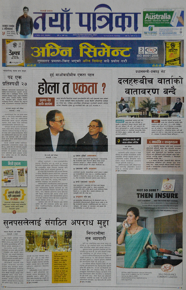 राजधानीबाट आइतबार प्रकाशित सबैजसो दैनिक पत्रिकाले वार्तामा बस्न एमाओवादीले सर्त राखेको, अस्पतालले बिरामीको तथ्यांक नदिएको, एमाओवादीले अख्तियार र लोकसेवामा भाग मागेको, आयल निगमलाई साना ग्यास व्यवसायीले अल्टिमेटम दिएको खबरलाई प्राथमिकताका साथ छापेका छन् ।